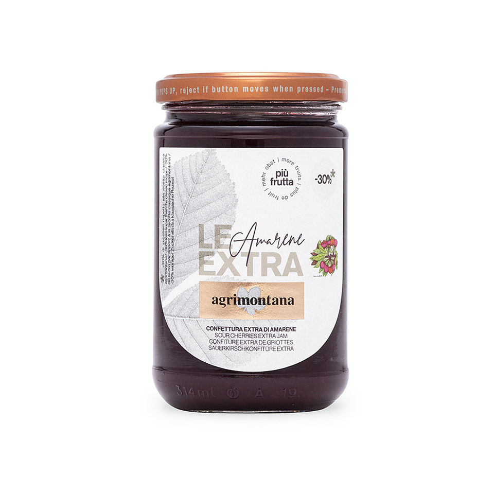 Confettura le Extra - AmareneCon meno zucchero rispetto alla ricetta classica Agrimontana. Composte da frutta e zucchero di canna, le confetture extra sono naturalmente prive di glutine.