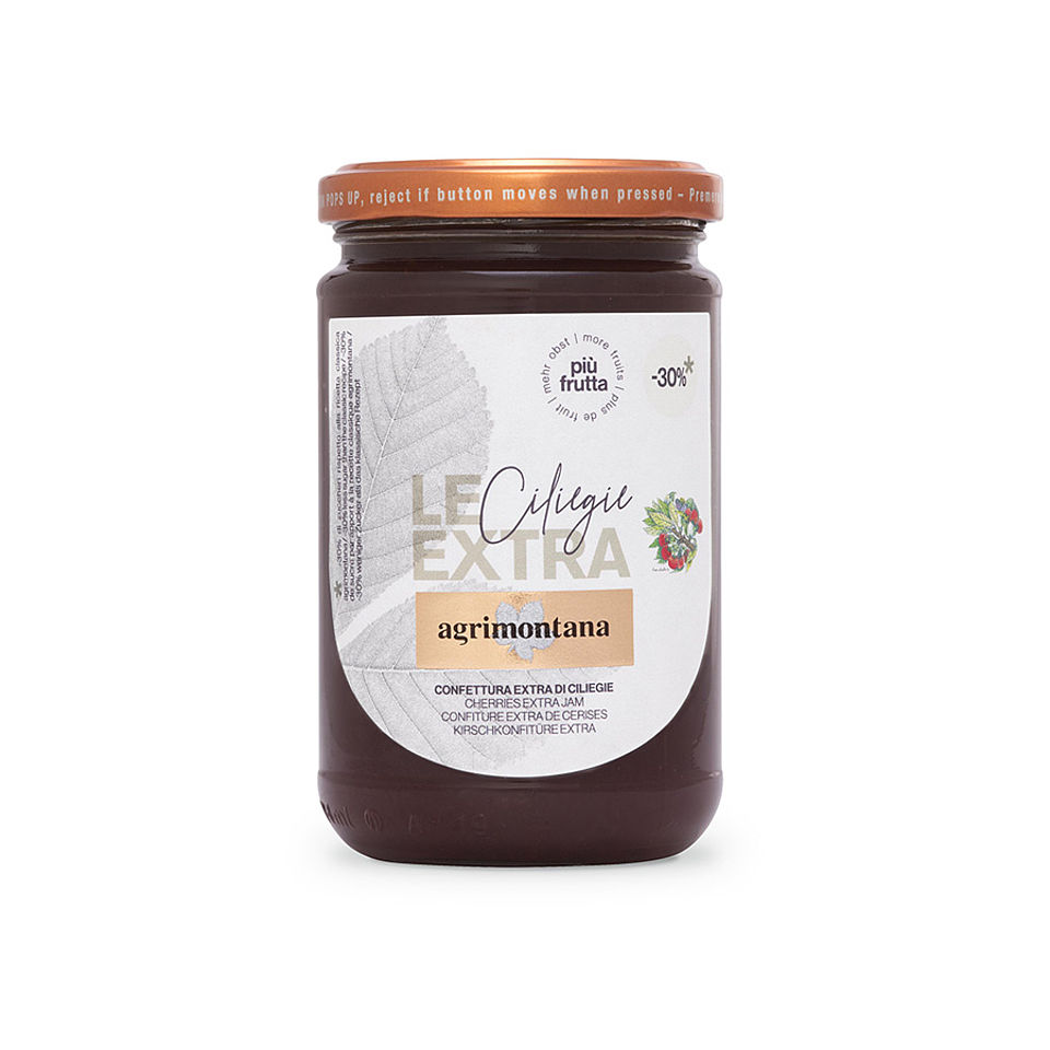 Confettura le Extra - CiliegieCon meno zucchero rispetto alla ricetta classica Agrimontana. Composte da frutta e zucchero di canna, le confetture extra sono naturalmente prive di glutine.