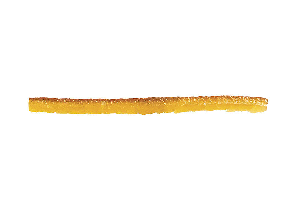 Ecorce d’orange en lamelles 7x80 mm droites en fagotsLamelles d’orange coupées régulièrement, sélectionnées et rangées en fagots. Originés : Sud de l’Espagne En chocolaterie, recouvertes de chocolat, glacées ou givrées. En pâtisserie comme décoration.