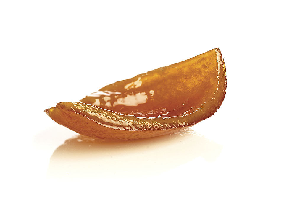 Ecorce d’orange en quartiersContrôle de la filière, épluchage à la main, surgelation immédiate et confisage lent, afin de préserver les huiles essentielles des oranges pour garantir l’arôme unique de l’écorce entière. Originés : Calabria - Sud Italie.