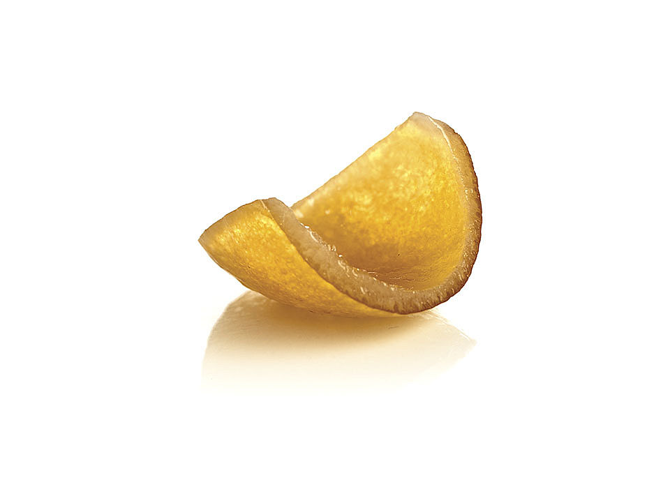 Quartiers Confits d'écorce de Citron de Sorrento (IGP)Quartiers obtenus par le citron ovale de Sorrento IGP. De forme elliptique, avec l’écorce d’une couleur jaune vif, très parfumée et la poulpe particulièrement juteuse et acide. La peau est riche d'huiles essentielles avec un parfum unique et avec un arôme caractéristique. Originés : Sorrento, Capri, Campania. Dans les pâtes levées et enrobées de chocolat.